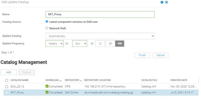 OpenManage Enterprise -> Configuration -> Firmware/Driver Compliance -> Catalog Management