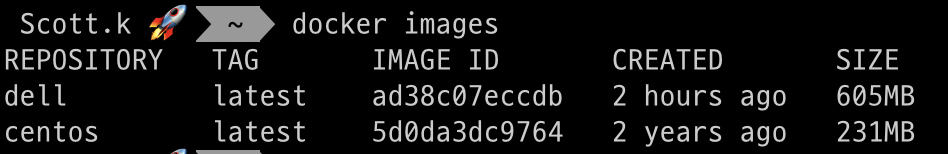 #docker commit 2875ad74a213(컨테이너 ID) dell(지정할 이름)