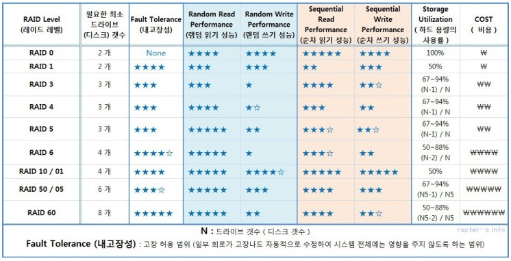 - 위 두 가지 구성 모두 최소 4개 이상의 저장장치 필요